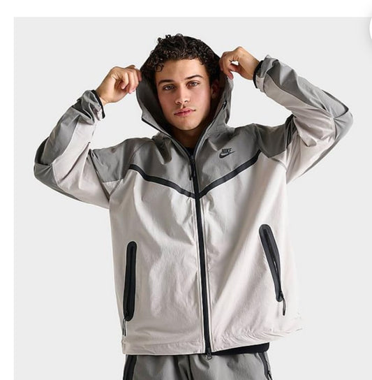 Nike Men's Light Iron Ore, Flat Pewter & Black Full-Zip Woven Tech Windrunner Jacket (Medium)