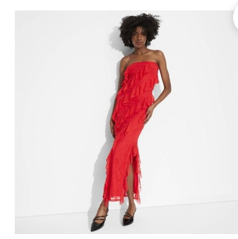 iKimK Wild Fable Women's Light Pink Lace Ruffle Maxi Bodycon Dress