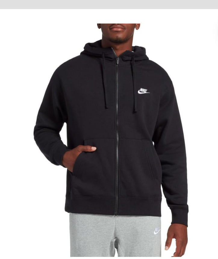This hoodie combines comfort and street style for an everyday piece to add to your wardrobe. Fit and design: regular fit hoodie. Ribbed sleeves and hem. Full length zipper that goes to the chin. Generous hood for coverage. Brushed material for a soft feel. Two hand pockets. Nike branding on chest.
