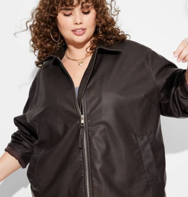 Wild Fable Womens Dark Faux Leather OverSized Bomber Jacket